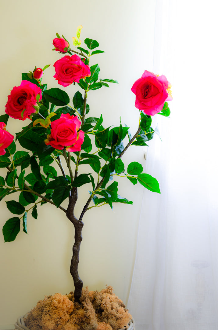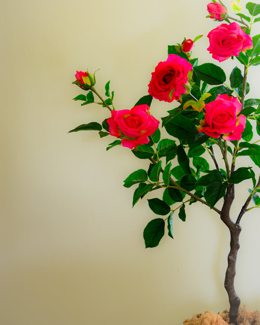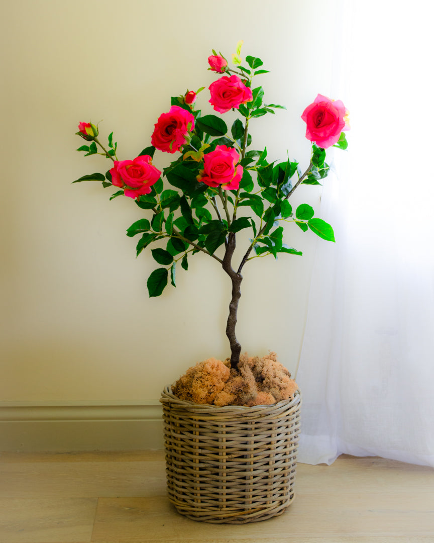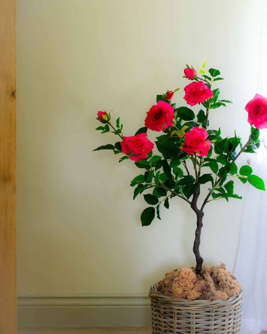 A beautiful and realistic artificial rose tree/bush, made from high quality materials and ideal for anywhere in your home. The tree displays stunning silk roses and an abundance of leaves, making it a wonderful addition to elevate your interiors. Indoor use only - not suitable for outside. Â