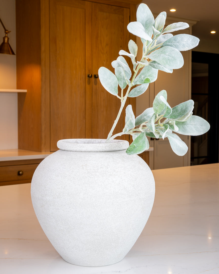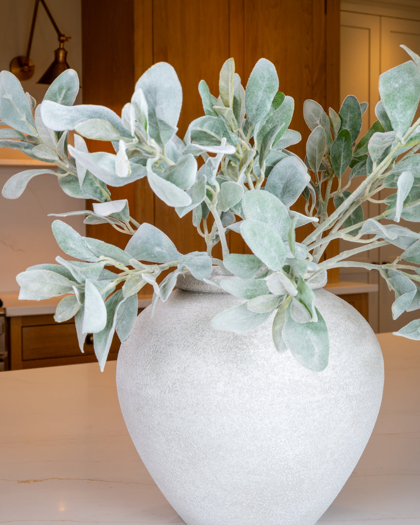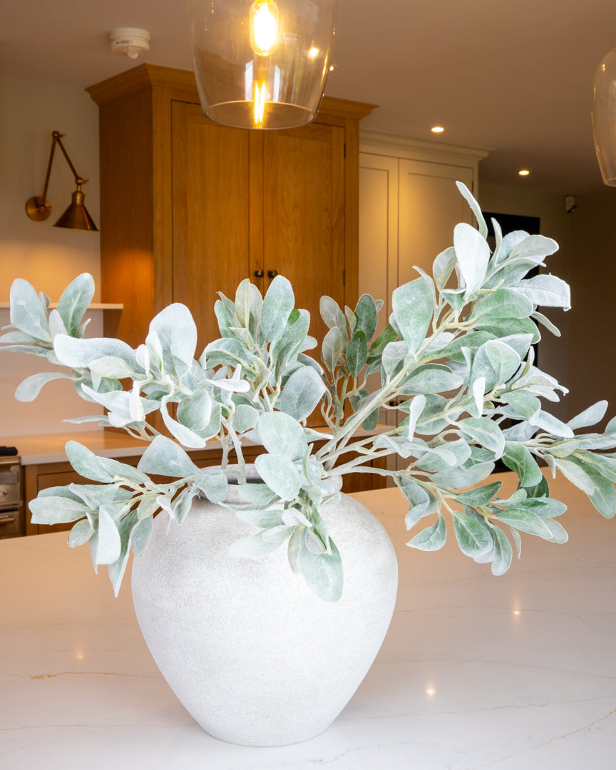 A gorgeous stem of artificial flocked lamb's ear foliage, making it a wonderful addition to flower stems, or styled on its own in a vase.