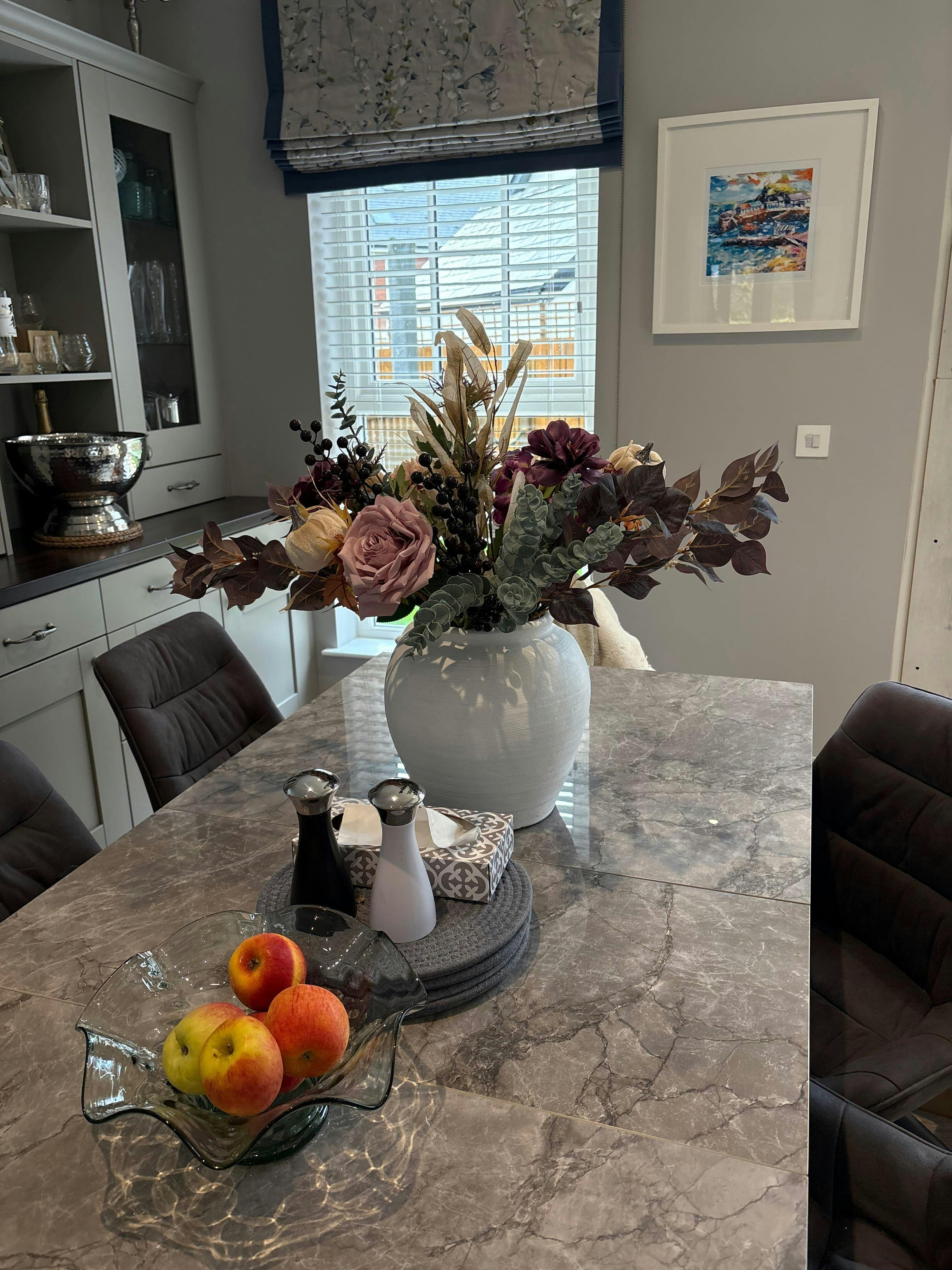 If you're looking for a real showstopper this autumn, then look no further than this beautiful artificial bouquet. Handmade from premium silk in moody autumn colours, complete with an abundance of seasonal stems; roses, chrysanthemums, hellebores, hydrangea and berries, and finished with a variety autumnal foliage and artificial pumpkins.