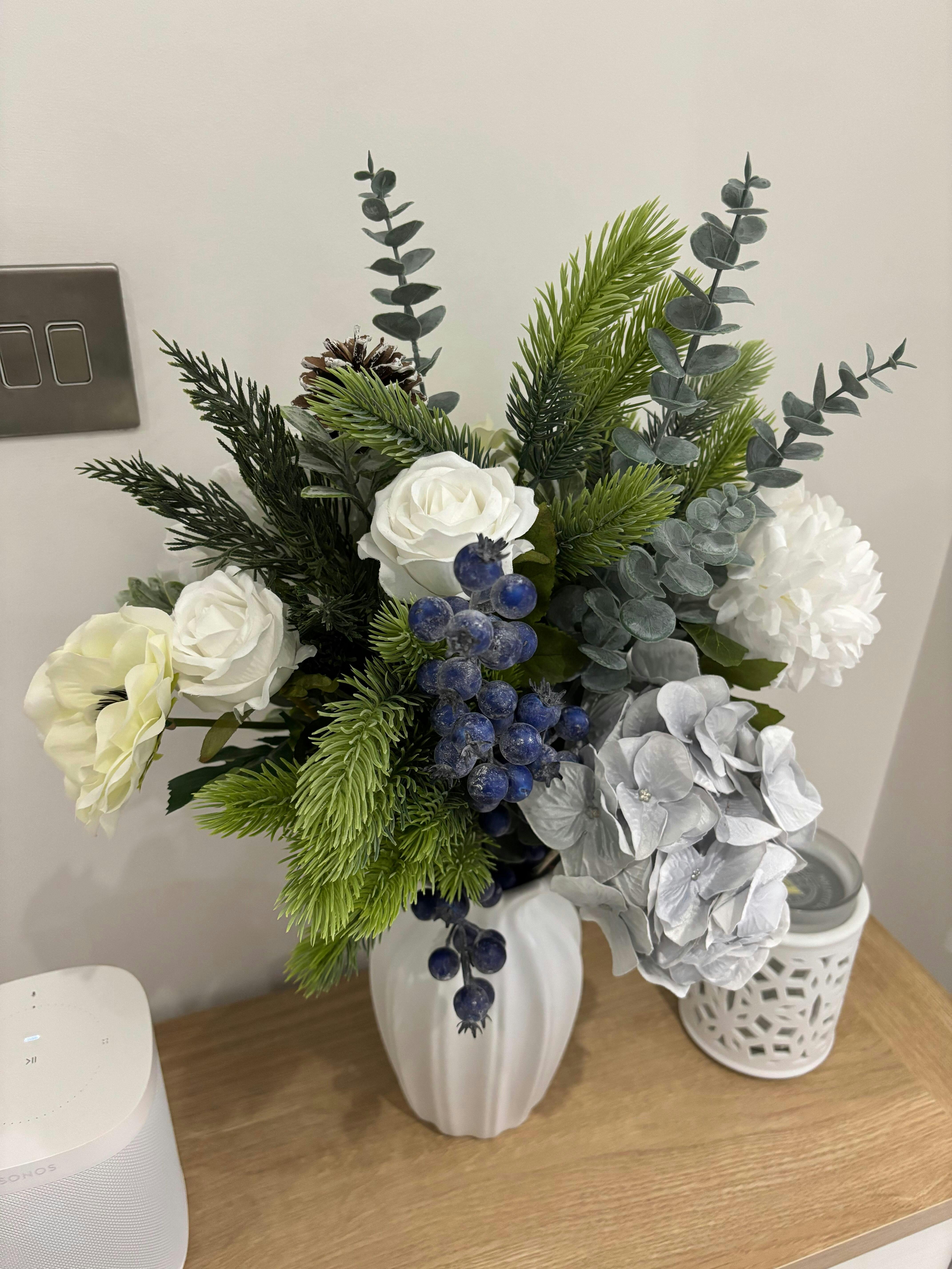 Beautiful seasonal winter bouquet. The quality of the flowers are exceptional as always. Thank you