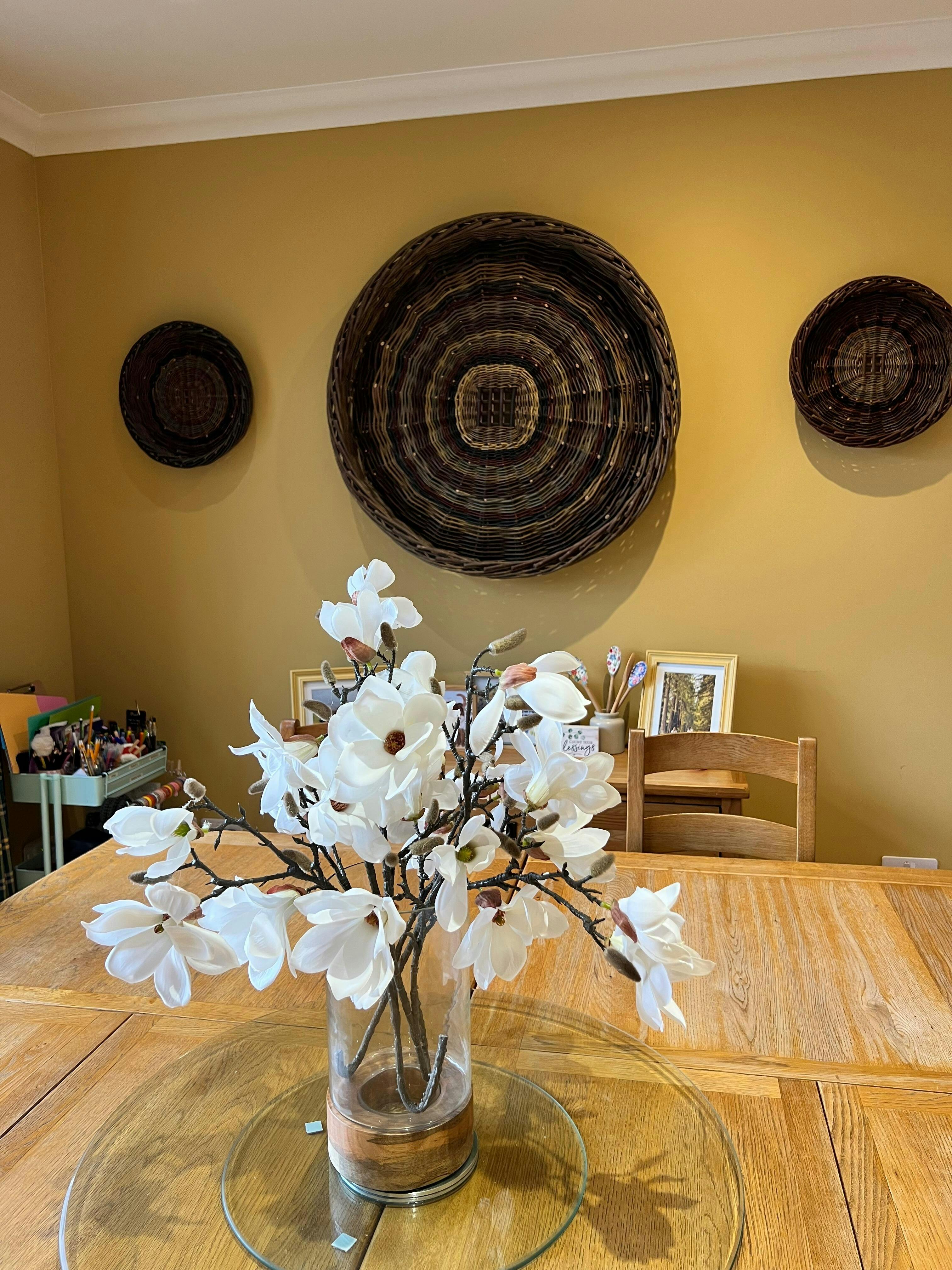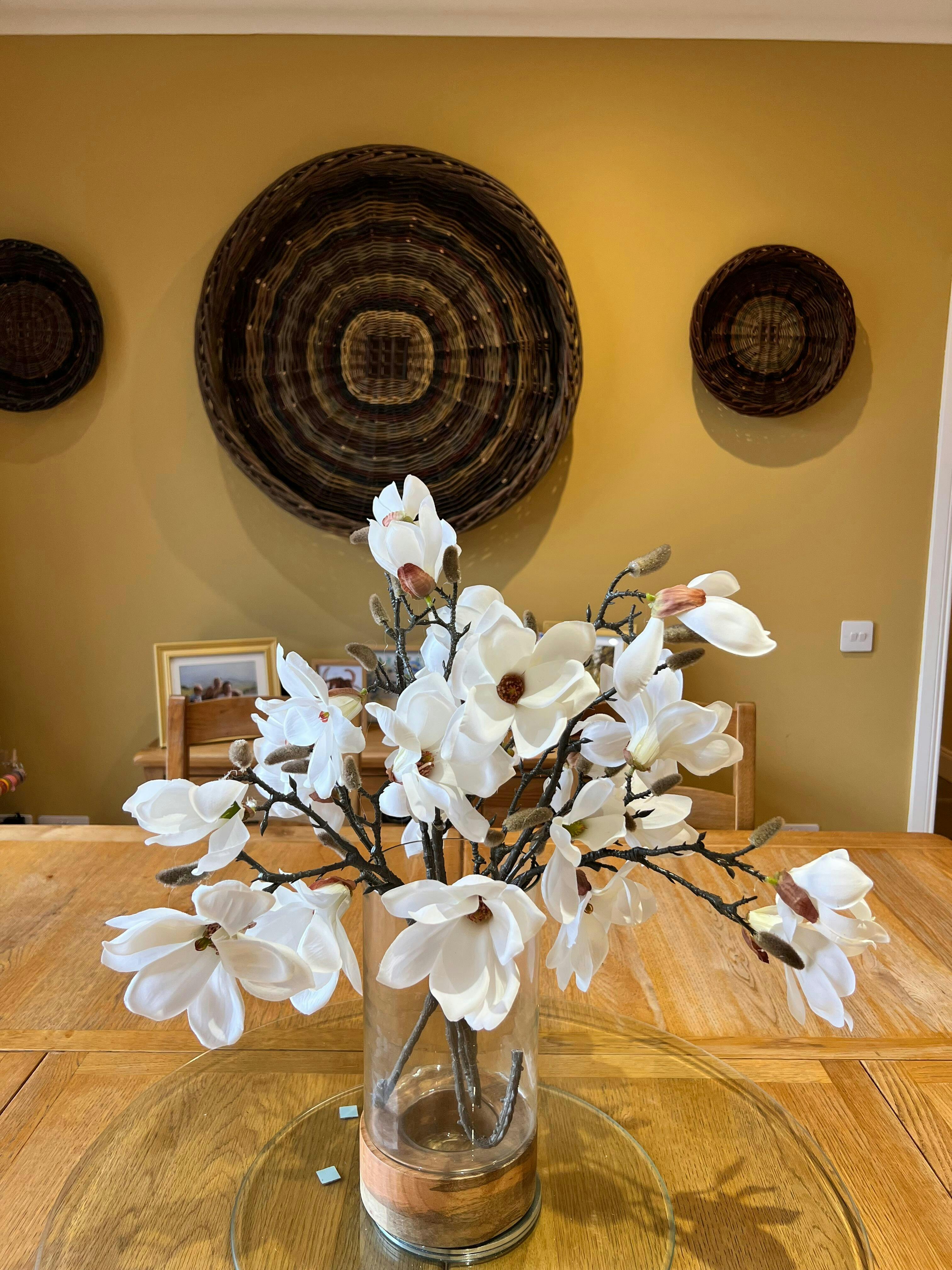 Absolutely love these winter magnolia stems, have been wanting something for the table for a while now and this is just perfect. You get so many flowers on each stem and also buds. They look real as if I have just cut some branches off the magnolia tree ! This is just three stems and I love that you can bend and shape to the right height for your vase . Highly recommend just beautiful quality