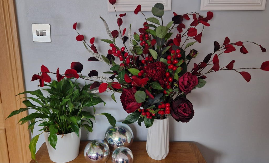 Wrap your home in the warmth of Winter with our Winter Mulled Wine Bouquet. A rich mix of bay leaves, burgundy eucalyptus, rosehips, roses, chrysanthemums, red berries and veronica spray creates a vibrant, lasting arrangement full of depth and charm. With no watering or wilting, it brings a touch of seasonal indulgence and effortless elegance to your space, all winter long.